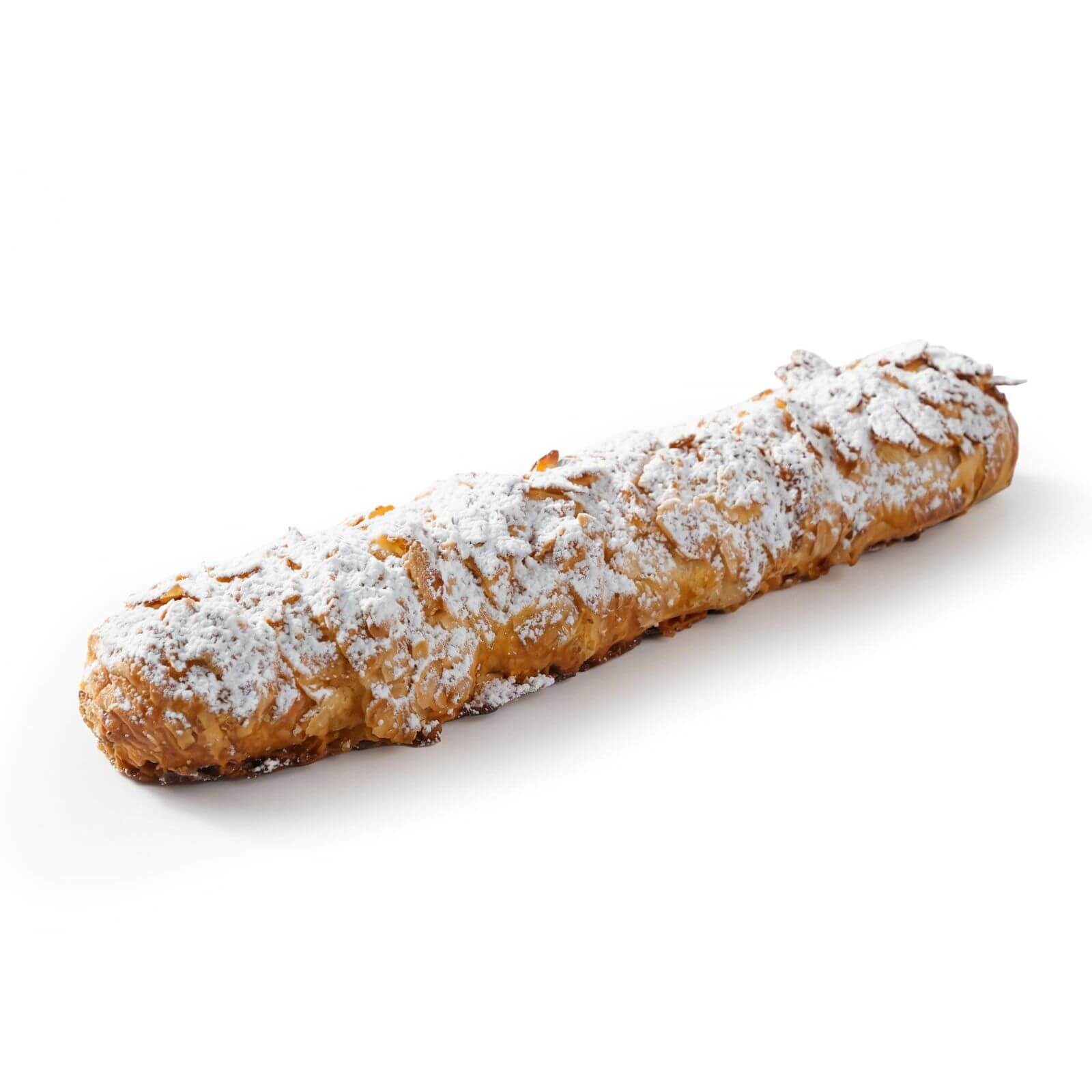 Roomboter bladerdeeg, amandelspijs, afgewerkt met krokante amandelen