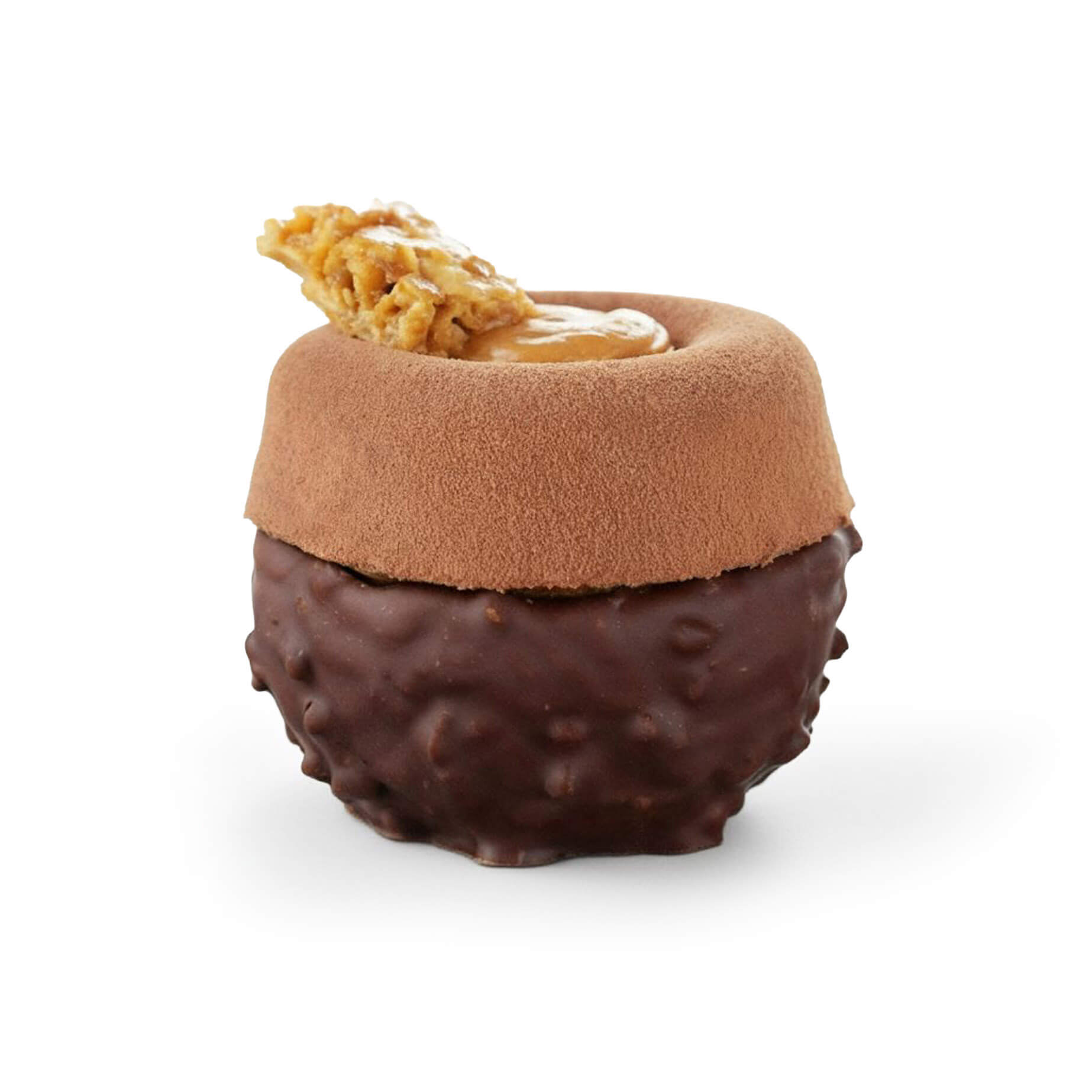 Pure chocolade fiancier met namelaka noire, vanille en gezouten karamel